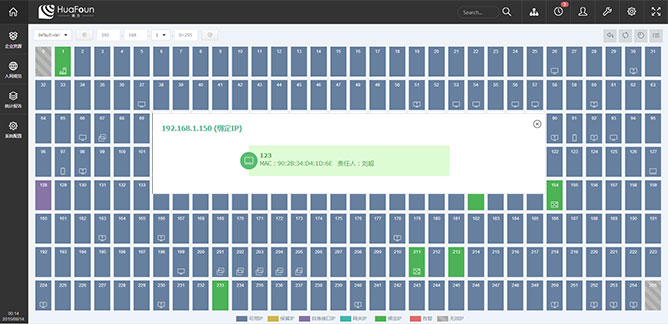 4、IP可视化管理平台画方IP可视化地址管理平台,通过自动搜索终端信息,以图形化展示方式,呈现已用ip、可用ip、ip使用人、ip终端类型、ip上一次使用人、最后一次在线时间等详细化管理平台,给运维人员带来便利的同时,提升了运维准确率。