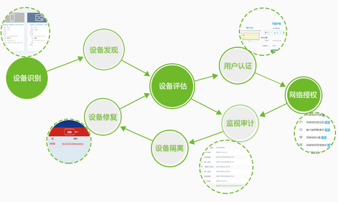 终端合法性画方NAM不仅实现身份的合法性,还要对终端的合规性、安全性进行严格检查,严格遵守“先检查,再入网”的原则,确保终端自身的安全性、合规性。终端入网前,按照管理员制定的合规性策略,如,是否安装单位规定的杀毒软件、桌面终端管理软件,判断入网。入网后,对于终端私自卸载行为,实时发现并踢出网络,确保终端的实时安全性、合规性。