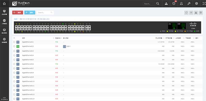 2、定位可视化 通过与可网管交换机SNMP协议联动,以交换机面板加列表形式,展现出交换机cpu、内存;交换机端口状态、端口类型、端口流量;终端在哪个交换机下的哪个端口。具有实时数据被动式更新的优势,终端ip信息的变更、终端接口的变化等均被同步到定位管理平台,确保运维人员精准的定位功能。